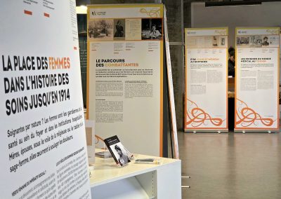 L’exposition part sur les traces des premières femmes médecins des années 1860 à la fin de la Première Guerre mondiale. En 1866, Madeleine Brès, qui sera la première femme médecin française, demande à s’inscrire à la faculté de Médecine. Vingt ans plus tard, les femmes médecins obtiennent de présenter l’internat comme leurs camarades masculins… En 1922, Marie Curie (qui n’est pas médecin) est la première femme à entrer à l’Académie de Médecine. Aujourd’hui, il y a désormais autant d’étudiantes que d’étudiants dans les facultés de médecine françaises.