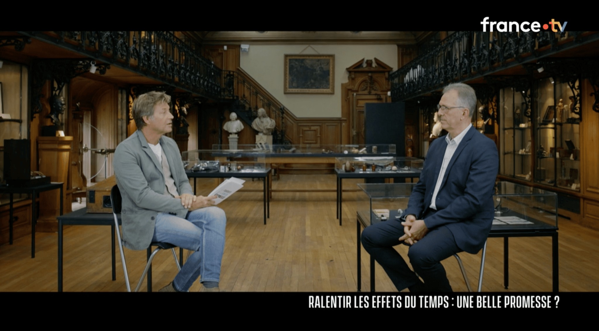 Après avoir offert un écho parfait au dernier roman de l’écrivaine Joyce Carol Oates, interviewée l’an dernier en ce lieu par Augustin Trapenard pour l’émission La Grande Librairie, les espaces et les collections du Musée ont illustré et animé les échanges passionnants sur la prévention du vieillissement, à l’occasion de la diffusion du troisième et dernier épisode de ce triptyque explorant des marqueurs forts des effets de la mondialisation. Cette fois, le Musée fait office de décor à la rencontre entre le journaliste Laurent Delahousse et Jean-Marc Lemaître, directeur de recherche à l’INSERM (Institut national de la santé et de la recherche médicale), pour évoquer non pas l’histoire de la médecine, mais l’avenir de la médecine régénérative mondiale.