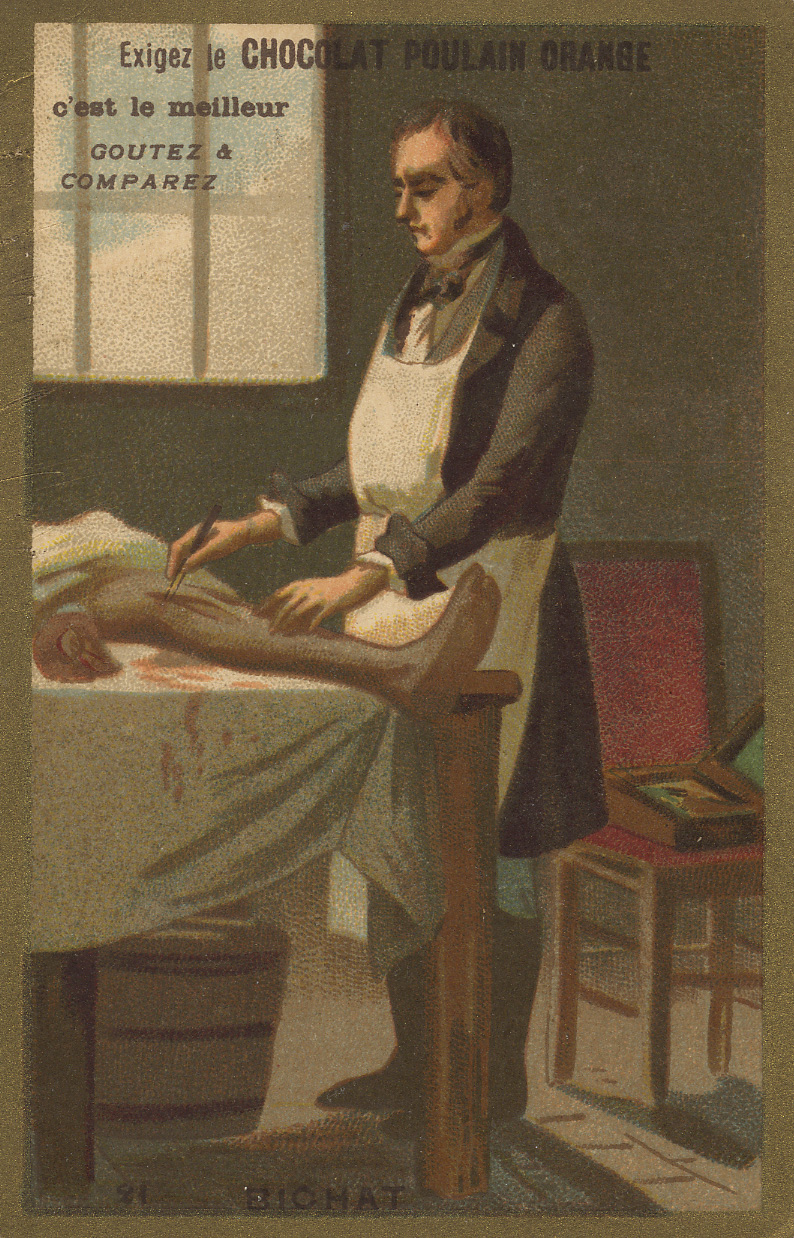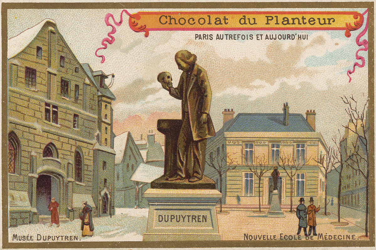 Cartes publicitaires à collectionner représentant Bichat et le musée Dupuytren