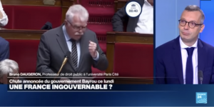 Ne manquez pas la participation de Monsieur le Professeur Daugeron dans l’émission « Parlons-on » sur France 24 , où il analyse la situation de la France et les défis de gouvernabilité. La vidéo est disponible en suivant ce lien : https://www.france24.com/fr/%C3%A9missions/parlons-en-les-invit%C3%A9s/20250908-une-france-ingouvernable-parlons-en-avec-f-simon-b-daugeron-et-n-rousselier