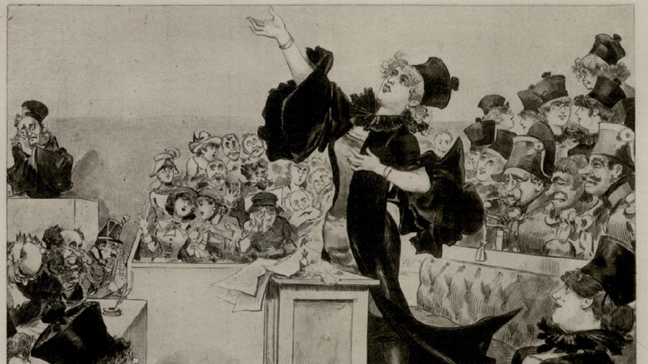 © Caricature d’Albert Robida, « Les femmes avocates », Le Vingtième siècle, 1883, Wikimédia Commons