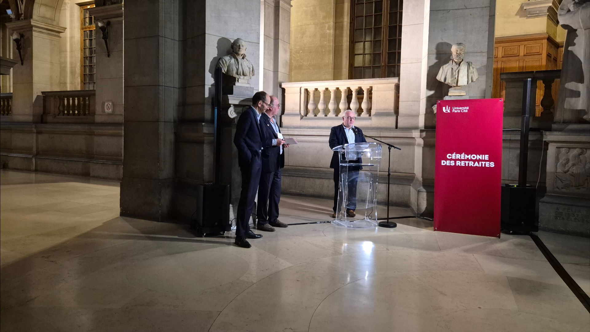 Cérémonie des retraites dans le hall du siège de l’université, sur le site Odéon