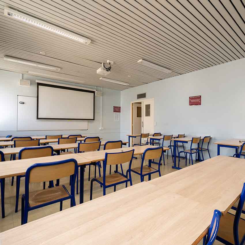 Matériel inclus dans les salles : ordinateur avec petite caméra, vidéoprojecteur, enceintes, tableaux blancs et tableaux à craies.