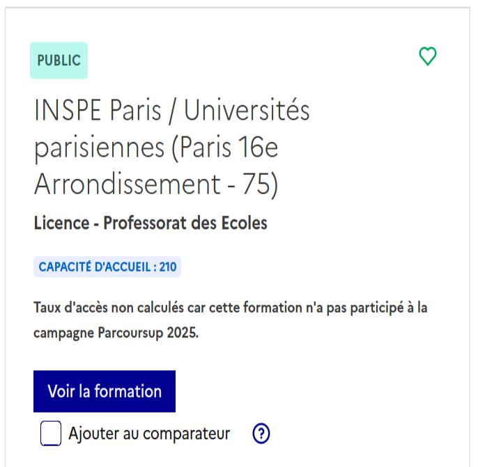 La licence professorat des écoles est rattaché dans Parcoursup à l’INSPE de Paris mais vous serez affecté à l’Université Paris Cité selon votre choix.