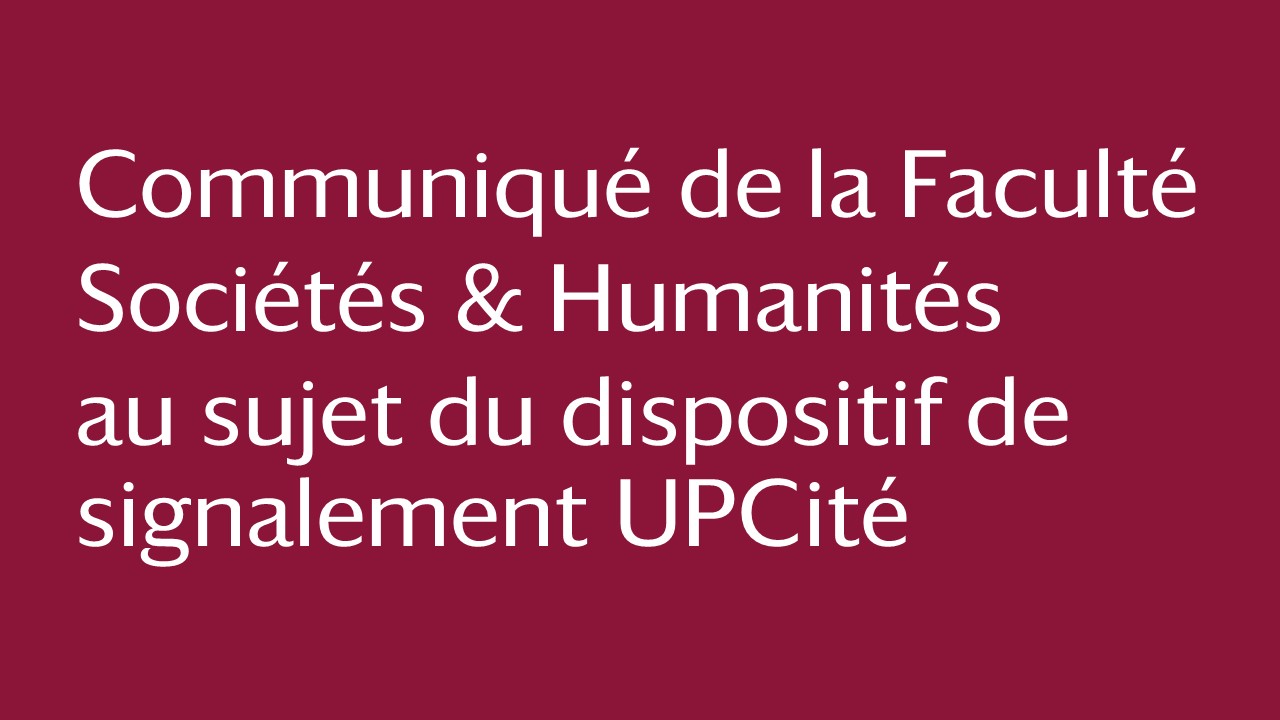 Actualités De Wikipédia aux IA, comment aider les élèves à comprendre le fonctionnement des outils numériques ? Le décryptage d’Eric Bruillard| Dans les médias Vieillir chez soi : jusqu’où compter sur sa famille ? L’enquête d’Anaïs Cheneau, Jonathan Sicsic et Thomas Rapp de la chaire Aging UP!| Dans les médias Pop culture sud-coréenne : les raisons d’un succès mondial, l’analyse de Vincenzo Cicchelli| Dans les médias Au Japon aussi, la neutralité des médias est au cœur des débats – article de César Castellvi| Dans les médias La réorientation semestrielle, c’est maintenant !| Formation DU Entraînement Naturel : se (re)connecter avec la nature, ses bienfaits et l’activité physique| Formation Michela Marzano, nouvelle directrice de l’UFR SHS| Faculté Sociétés et Humanités Découvrez les 8 projets lauréats du programme MobinterSH 2025| Formation Communiqué de la Facultés Sociétés & Humanités au sujet du dispositif de signalement UPCité| Faculté Sociétés et Humanités Toute l’actualité Rentrée 2025 : bienvenue à la Faculté S&H ! En savoir plus Agenda 18 septembre 2025[EXPO] Flash ! Petite histoire de la photographie alluméeMusée suisse de l’appareil photographique 6 novembre 2025[EXPO] Étienne-Jules Marey : chronophotographie, sciences et artsMusée d’Histoire de la Médecine - Site Odéon 20 novembre 2025Decolonial queer thinking: notes towards the consolidation of a fieldCampus Grands Moulins 29 novembre 2025[COLLOQUE] Résistance(s) face à la crise écologiqueInstitut de Psychologie 4 décembre 2025[COLLOQUE] Le Corps Incarné : vers une nouvelle compréhension du vivantAmphithéâtre du site Lacretelle Tout l'agenda En librairie Dispositifs thérapeutiques hors divan – Clinique, recherche, éthique, évaluation Marcela Gargiulo et Manuella De Luca sont toutes deux professeures de psychologie à l’Institut de Psychologie, et... Casus belli – La guerre avant l’État Christophe Darmangeat est enseignant-chercheur en anthropologie sociale et membre du laboratoire Dynamiques sociales... Les Passions dangereuses Guillaume Le Blanc est professeur de philosophie politique et sociale à l'IHSS et membre sénior de l'Institut... Les héroïnes de la modernité – Mauvaises filles et psychanalyse matérialiste Laurie Laufer est professeure de psychopathologie clinique et de psychanalyse, directrice de l’Institut Humanités,... Olympe de Gouges, Une femme dans la Révolution Florence Lotterie est professeure de littérature et membre du Centre d’Études et de Recherches Interdisciplinaires... Toutes les publications La Faculté Sociétés et Humanités en chiffres étudiantes et étudiants structures de recherche personnels enseignants et de recherche personnels administratifs et techniques