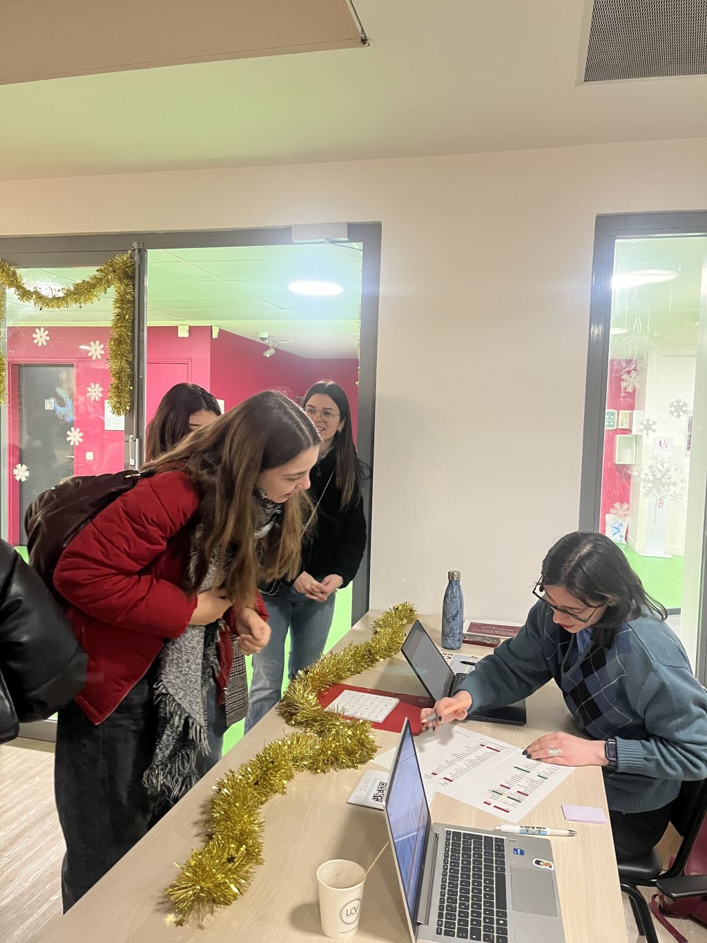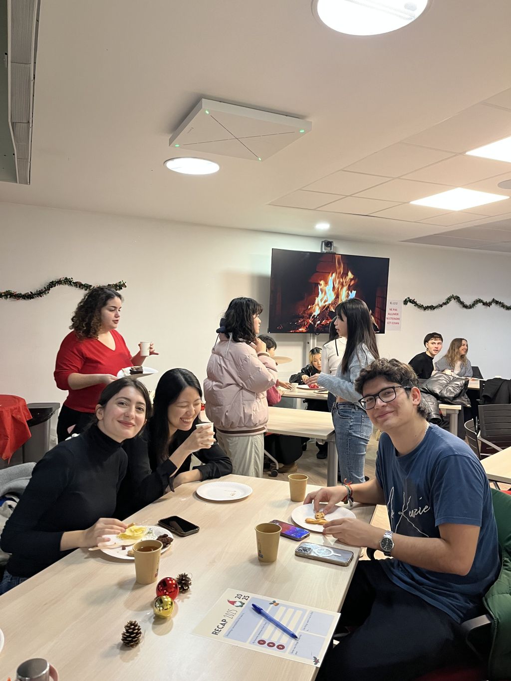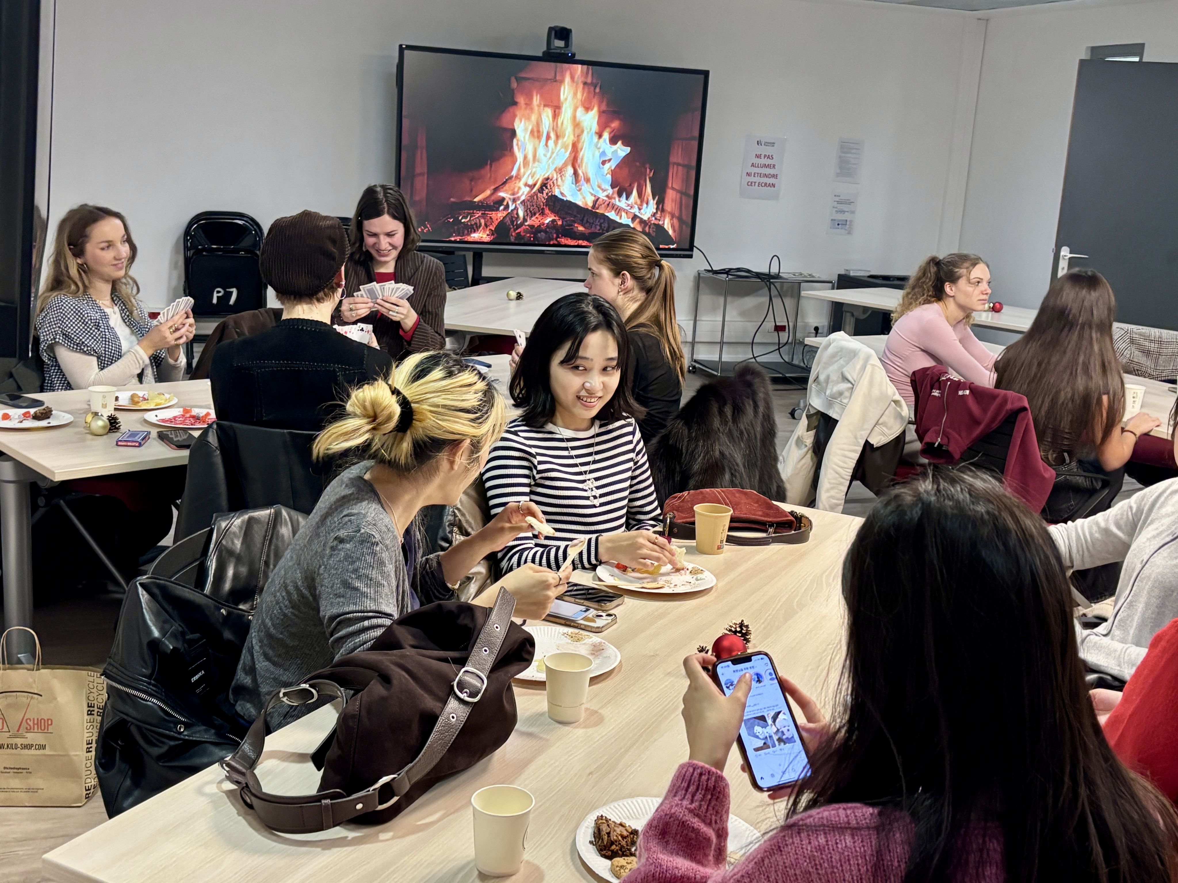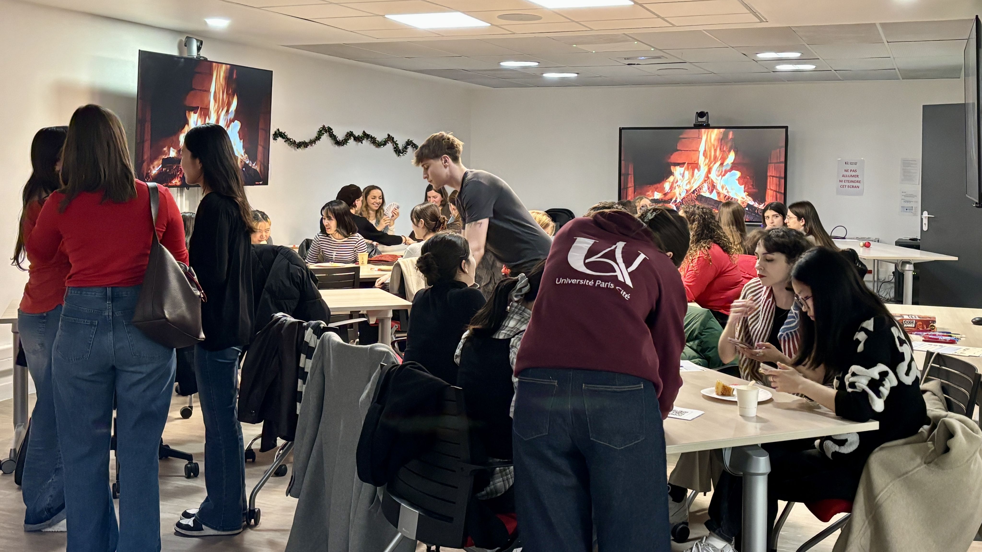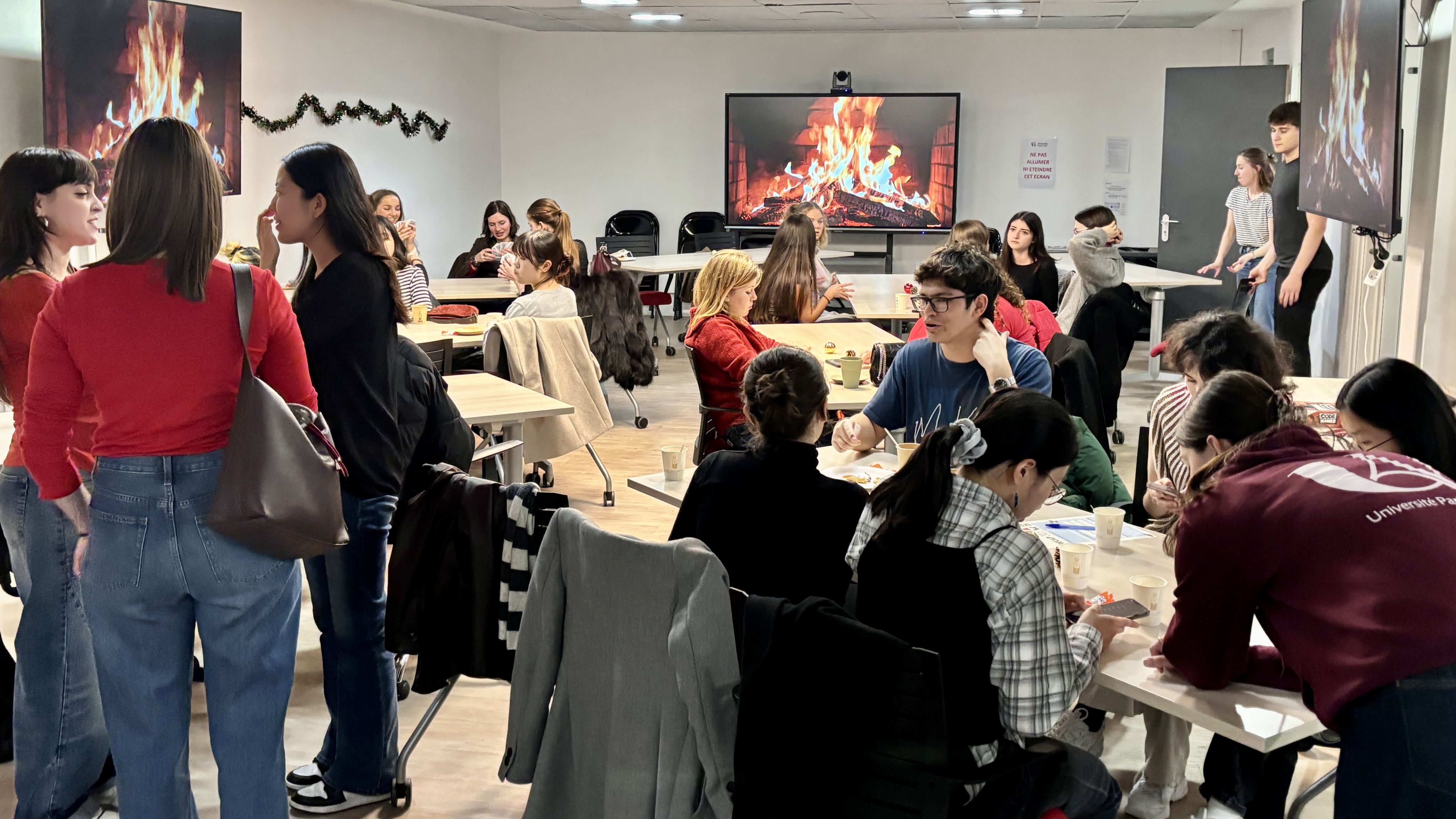 Mercredi 10 décembre, une quarantaine d’étudiantes et étudiants internationaux en échange ont célébré noël ensemble lors d’un événement organisé dans les locaux de la Faculté Sociétés & Humanités. Au programme : une ambiance chaleureuse avec feu de cheminée, chocolat chaud, buffet gourmand et activités ludiques !