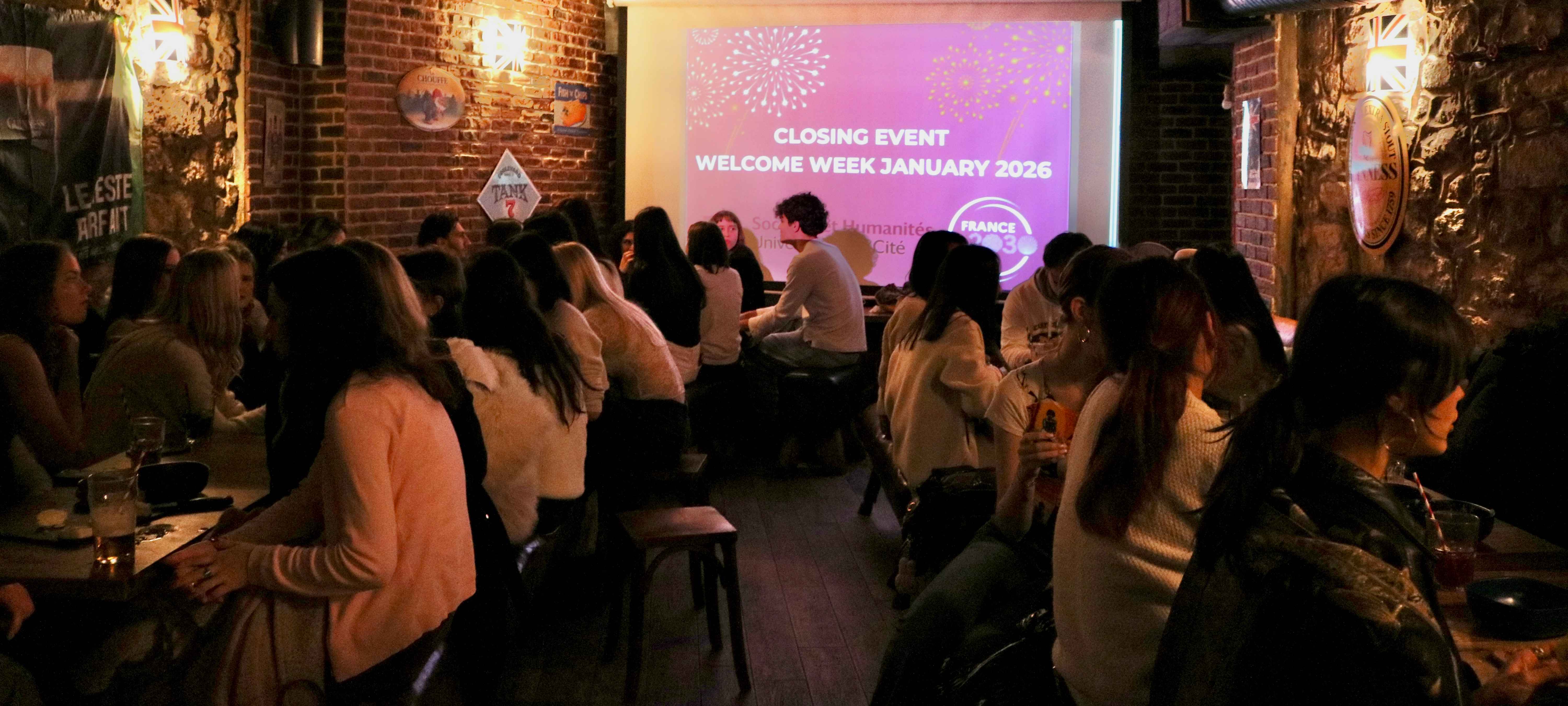 La Welcome Week s’est conclue dans une ambiance festive lors d’un cocktail de clôture dans un bar au cœur du 5ème arrondissement. Un moment privilégié pour échanger, créer des liens et célébrer ensemble le début de cette nouvelle aventure !